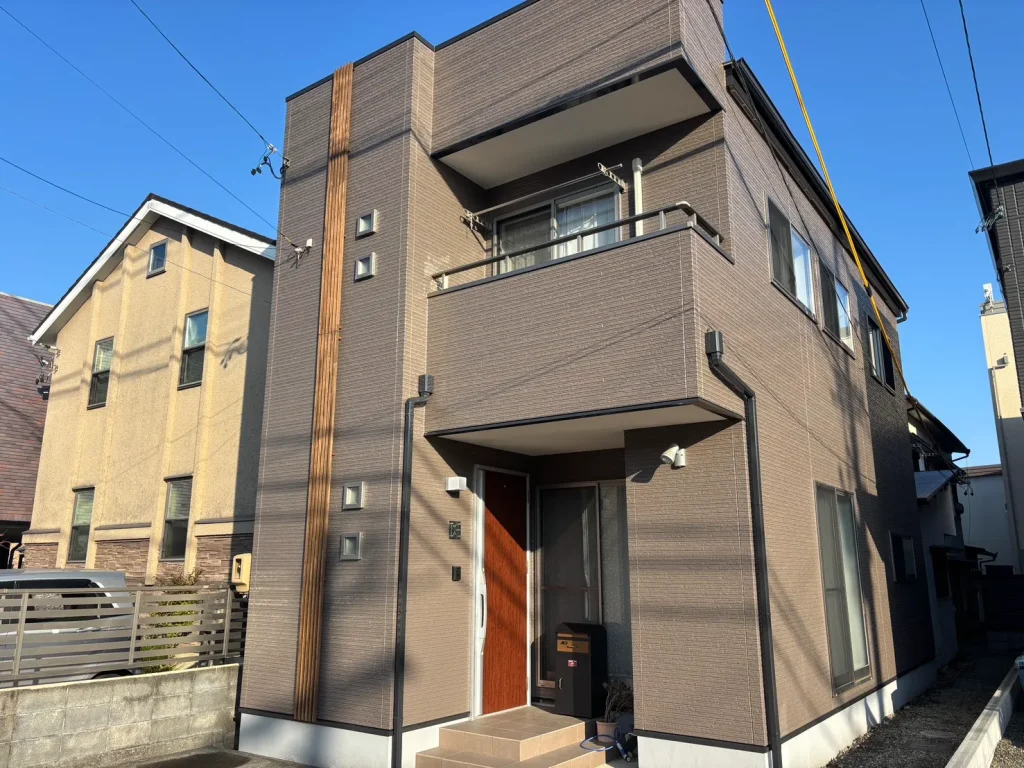 外壁の色を思い切って変えてみたい」というご相談をいただき、今回の塗り替えではこれまでの明るい印象から、少し落ち着いたブラウン系のカラーをご提案しました